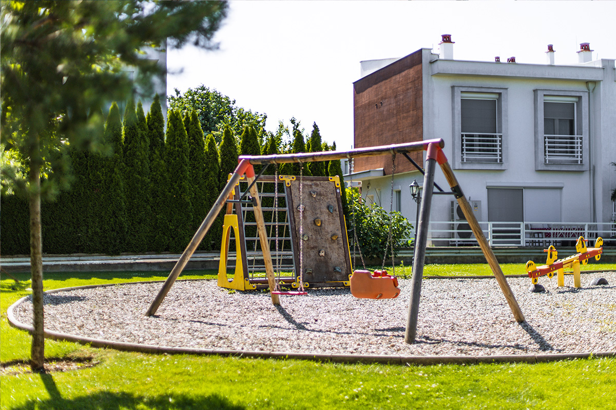 Hapësirat e gjelbra të cilat mbulojnë më shumë se 40% të sipërfaqës, të mbushura me lodra të ndryshme, fitness të jashtëm, fusha rekreative sportive, gjelbrim dhe lule të japin ndjesinë e të jetuarit bashkë me natyrën.